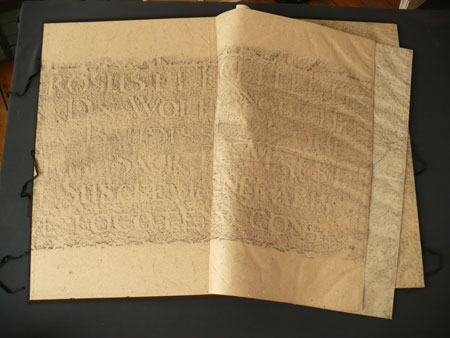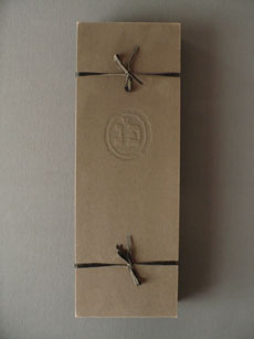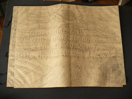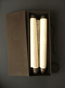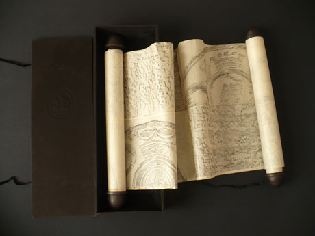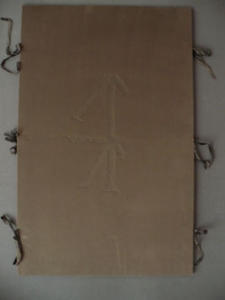 ![]() ![]() Zwój - C. Ż w Łodzi, frottages na bibule japońskiej z lat 1987 - 1990, 22,5 x 84 x 10,5; Oprawa:tektura, czarne płótno, drewno, druk z tłoczeniem. FROTAŻE ![]() ![]()
